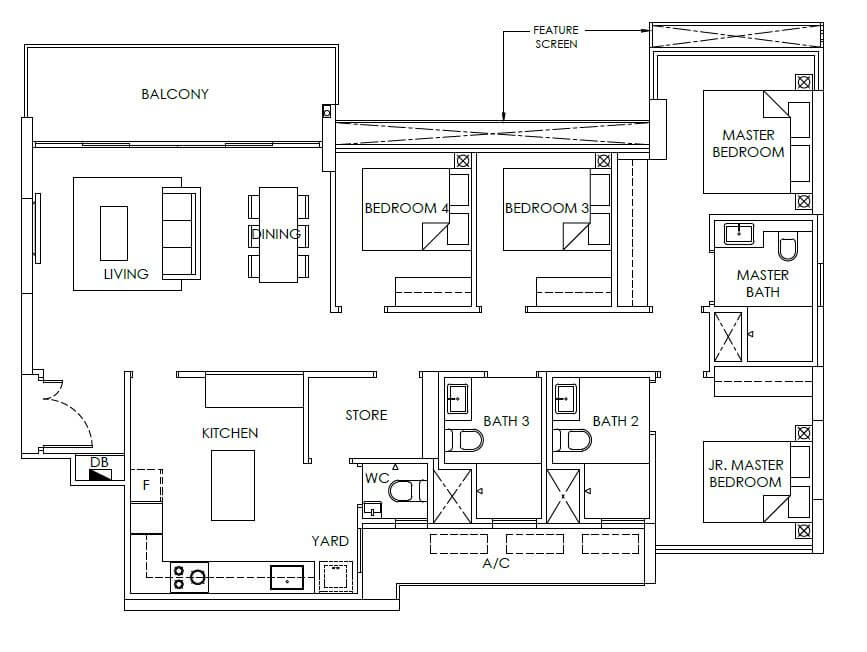 3 Bedroom + Study (Deluxe) 1001 Sqft